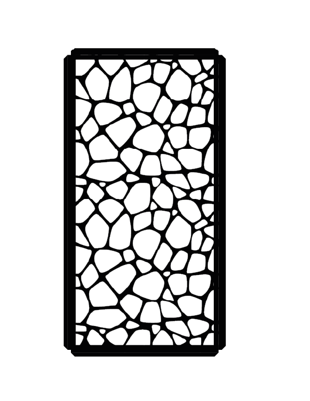 Fachada decorativa en lámina Cold Rolled calibre 16, de 100×200 cm, con diseño calado orgánico tipo cristal roto. Ideal para cerramientos, divisiones o detalles arquitectónicos modernos. Fabricada con corte láser y doblez lateral para mayor resistencia.