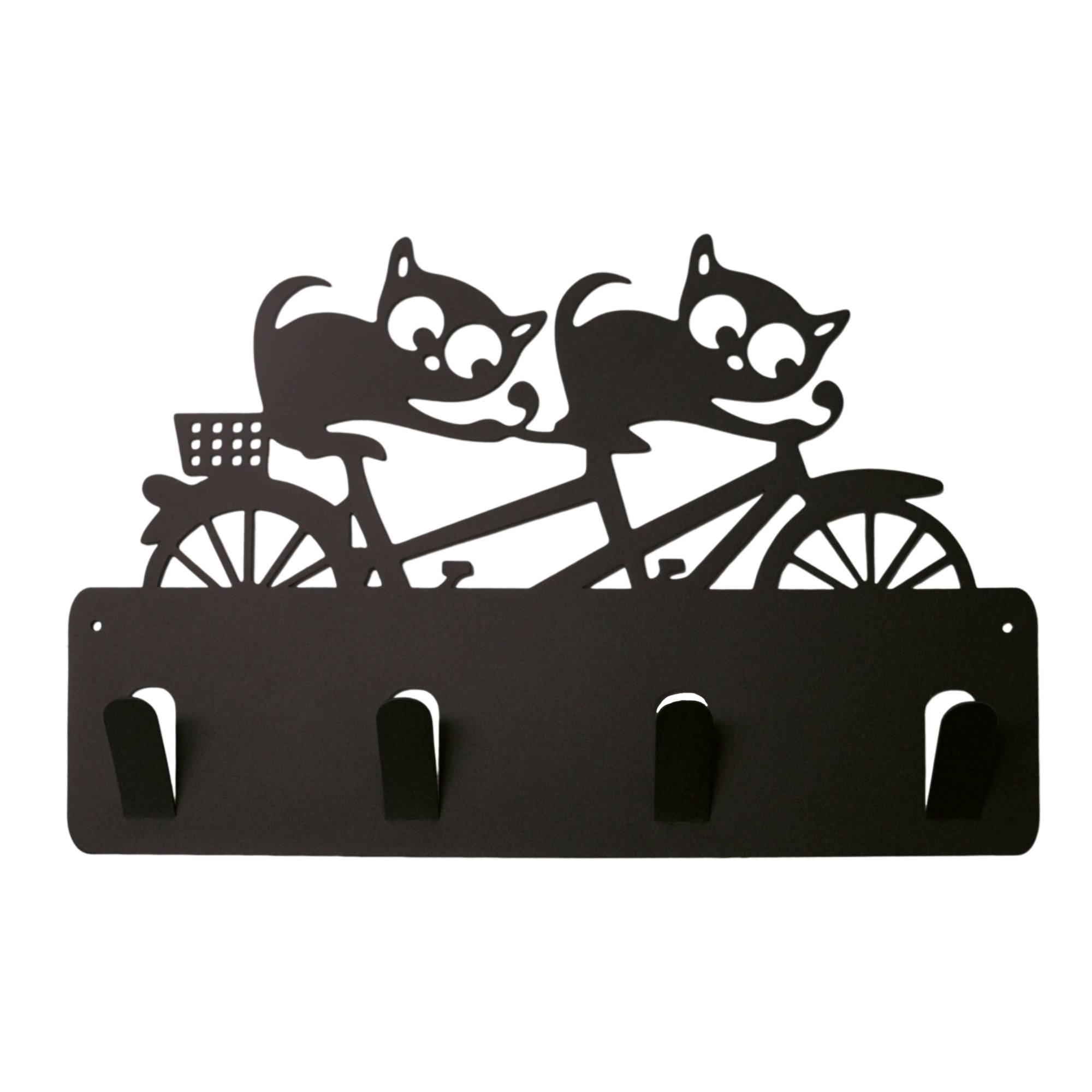 Perchero de Acero Cold Roll con Diseño de Gatos en Bicicleta