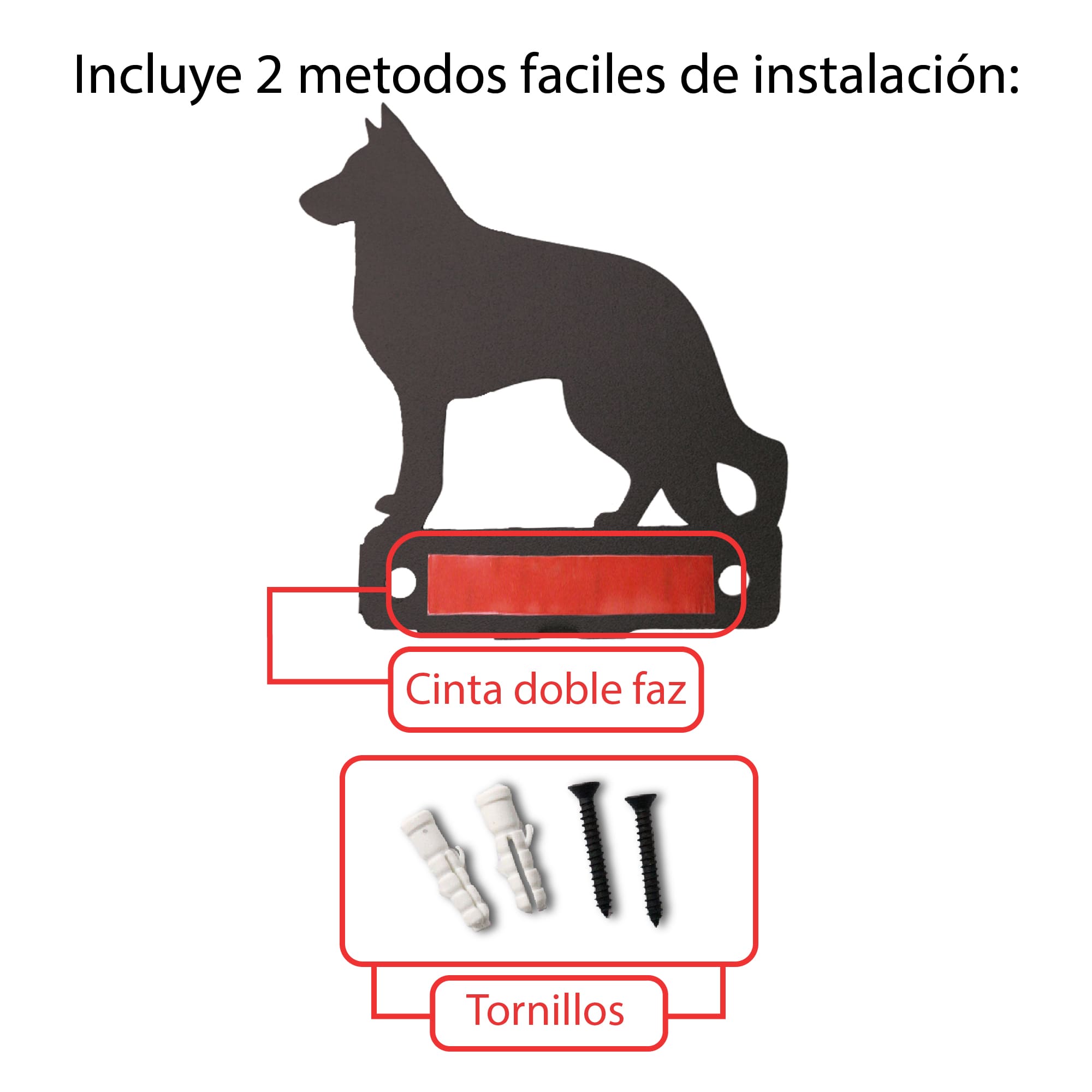 Porta correas de acero cold roll con diseño de Akita Inu, pintado con pintura electrostática de color negro opaco de alta calidad. Es instalable en la pared, ofreciendo máxima eficiencia y orden en cada salida. Este accesorio combina la robustez del acero con la belleza de un diseño inspirado en nuestros pequeños amigos peludos. Además, puedes personalizarlo con el nombre de tu mascota por un adicional de 8.000 pesos colombianos.